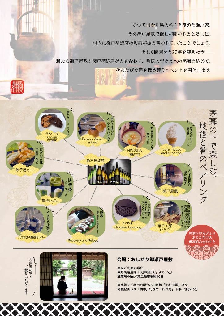 その感謝の気持ちを込めて、瀬戸屋敷の特別な空間で、瀬戸酒造店の地酒を楽しむ一日限りのイベントを開催します。