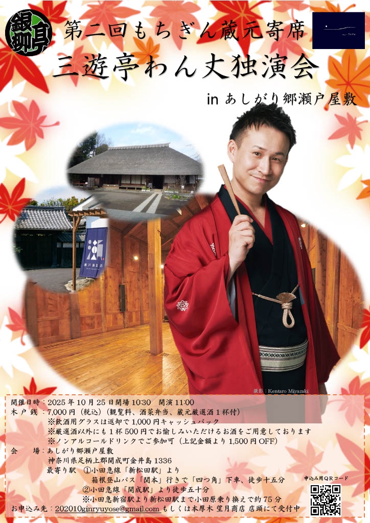 【イベント】第二回もちぎん蔵元寄席 三遊亭わん丈独演会(事前予約制)